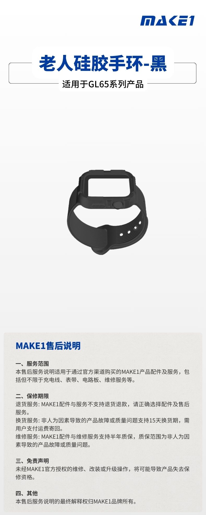 MAKE1 黑色老人硅胶手环