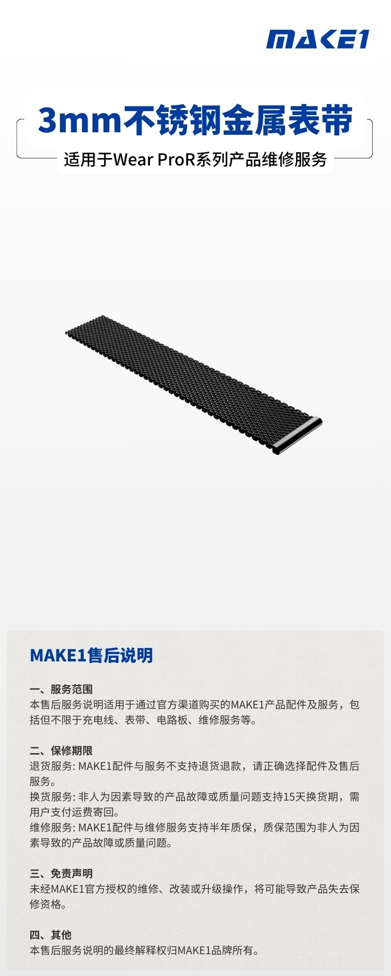 MAKE1 3mm不锈钢金属表带维修服务