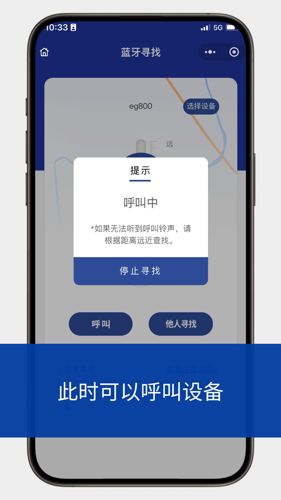 如果因手机兼容性导致无法呼叫,或因环境嘈杂导致无法听到铃声,请走到显示为近距离的位置,设备就在附近约1米范围内。