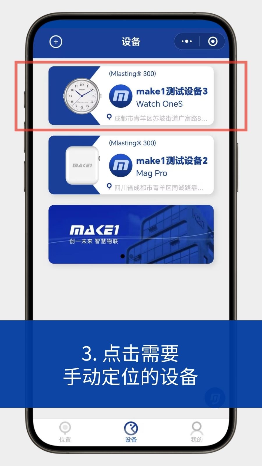 3.点击“定位”按钮,设备会进行主动位置更新
